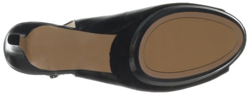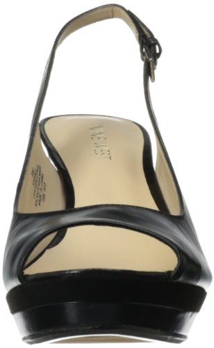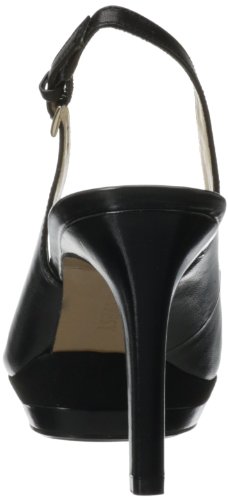 Platform pump featuring peep toe and adjustable slingback strap with buckle closure