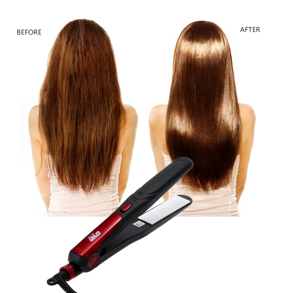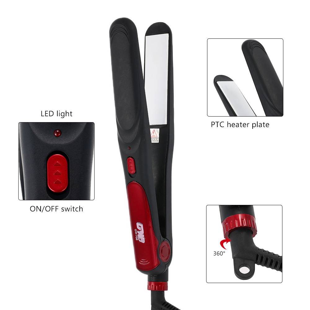 Equipped with ultra-smooth ceramic tourmaline plate, professional material for hair straightener and reduces harm to hair.