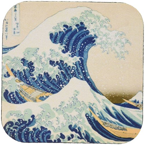 3dRose cst_155631_2 The Great Wave Off Kanagawa by Japanese Artist Hokusai Dramatic Blue Sea Ocean Ukiyo-E Print 1830 Soft Coasters, Set of 8
