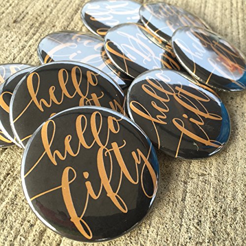 Hello Fifty Buttons, 50 Years, 50th Birthday Party Pins Buttons (Set of 10)