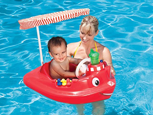 This action-packed baby float is packed with play features, including a steering wheel that really turns