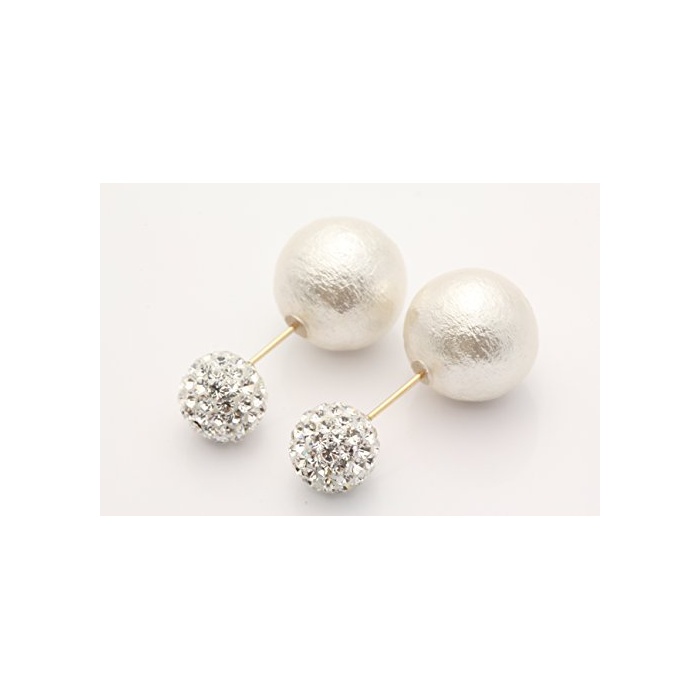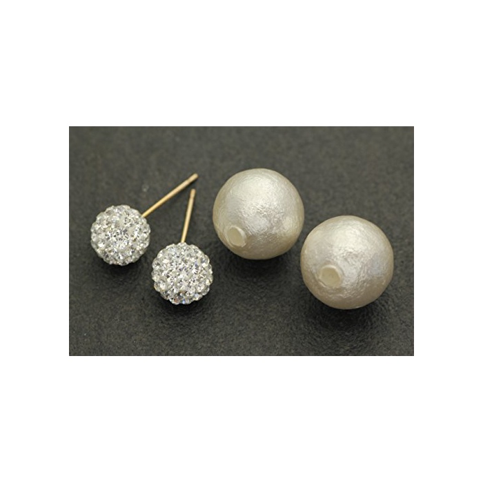 [캔디] Candy 체코 유리(크리스탈)코튼 펄 캐치 부착 피어스(귀걸이)K10옐로우 골드【K10YG】 ya-mnsu-ygk