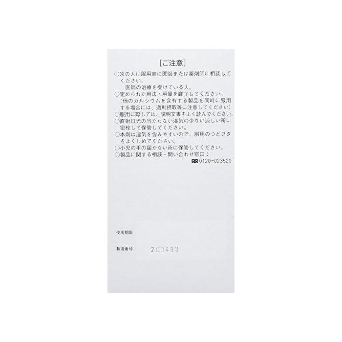 전성분 : 1일량(2정)중 침강 탄산 칼슘1250mg(칼슘으로서 500mg)첨가물로서,유당 수 무침,백설탕,기시리토루,《쇼》당 지방산 에스테르,향료