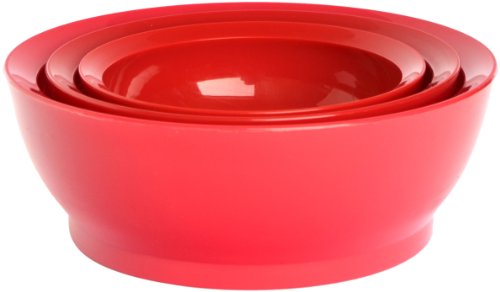 CaliBowl Nested Non-Spill Low Profile Bowls with Non-Slip Bases, Set of 3 Assorted Sizes, Red