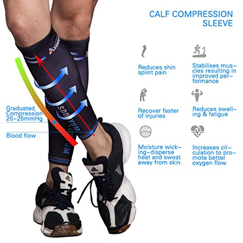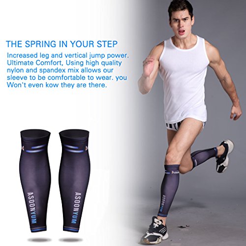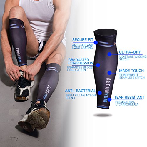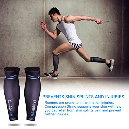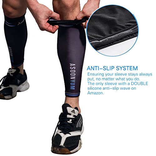 What does a calf sleeve do? In the front of the leg sleeves target shin splints, while micro ribbing in the leg sleeves provide calf support and decrease fatigue. The ASOONYUM Compression Calf Sleeves are moisture wicking, meaning they will stay dry and lightweight during long runs and workouts.