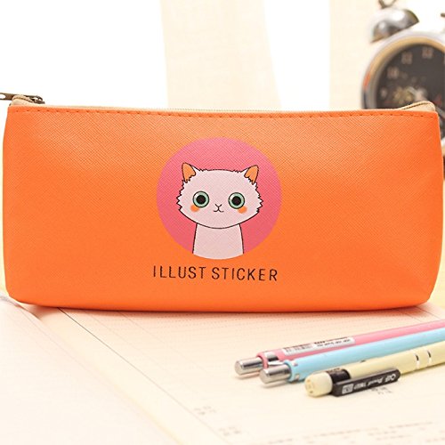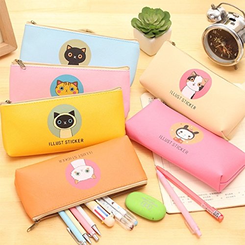Katoot@ 4pcs Kawaii Cat school pencil case for girls Cute PU leather colorful pen bag stationery pouch office school supplies zakka
