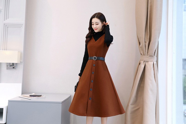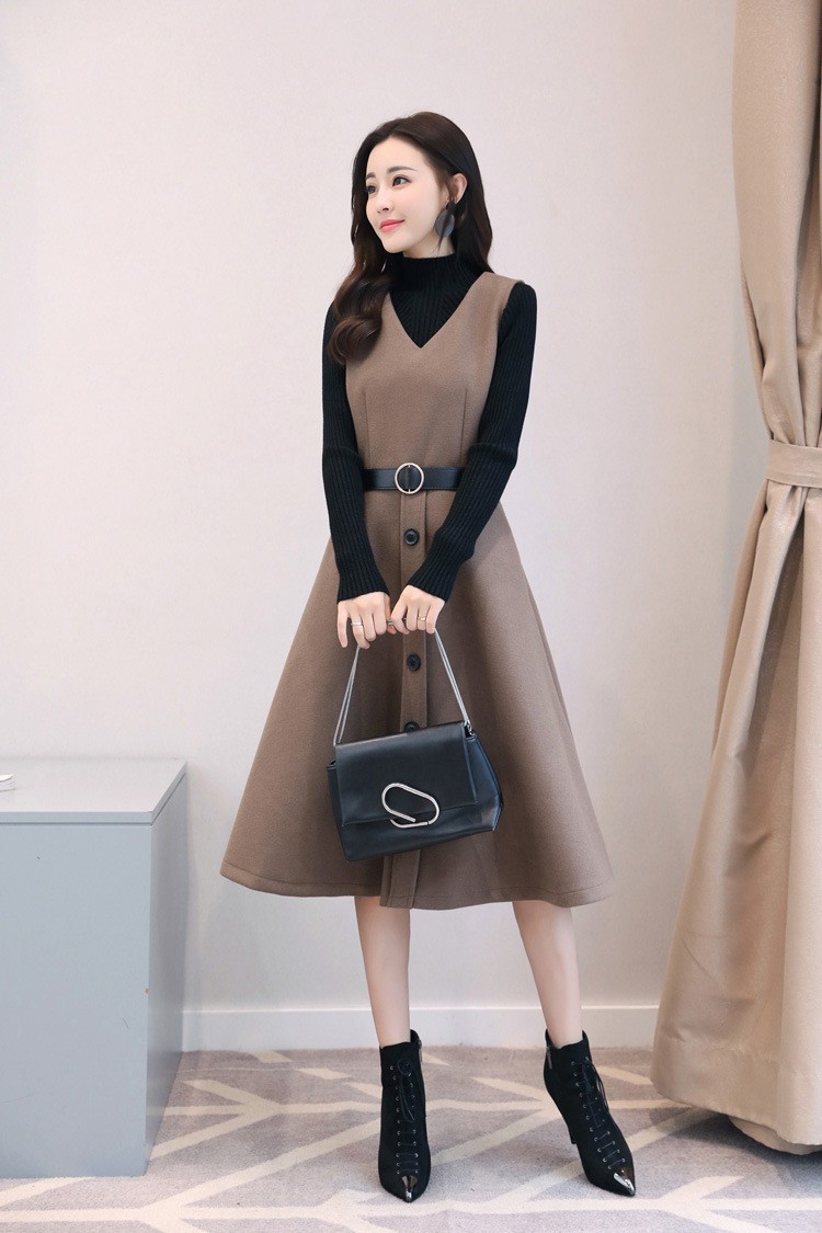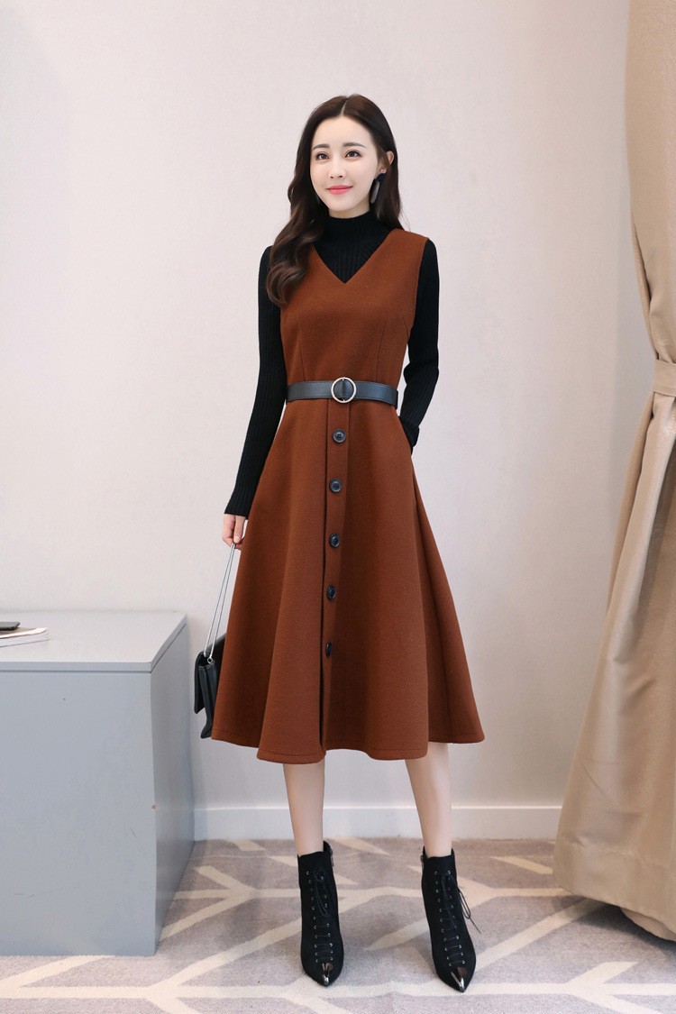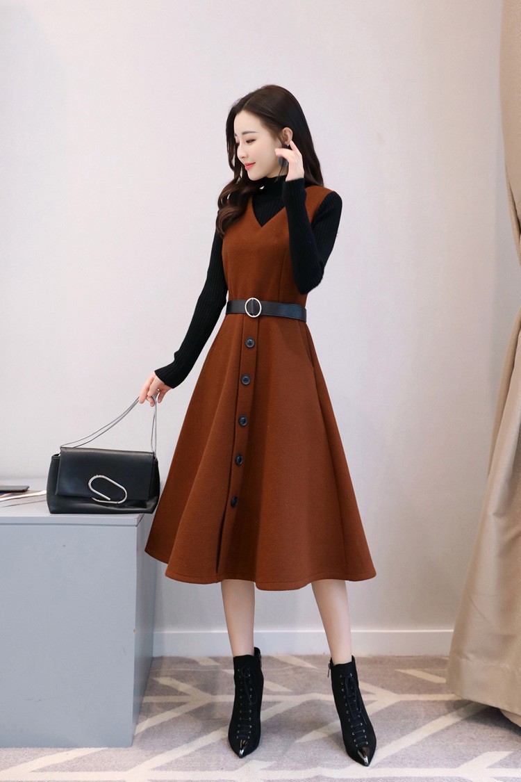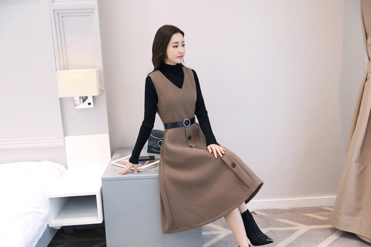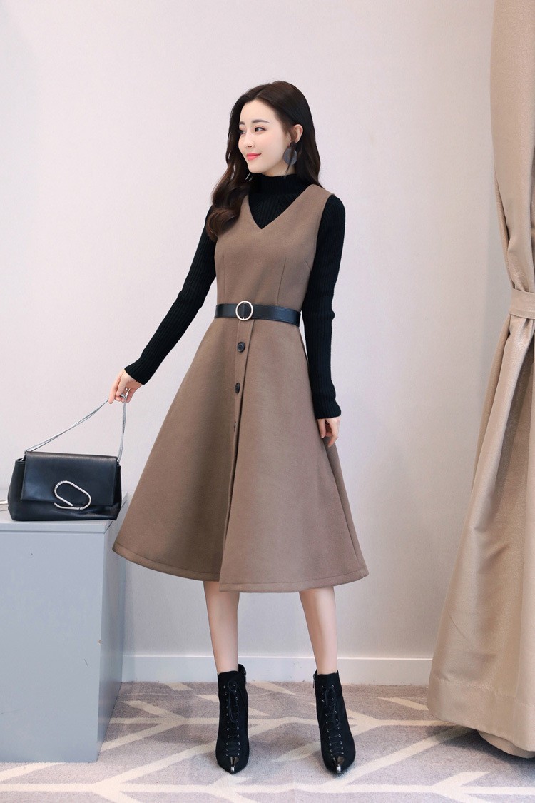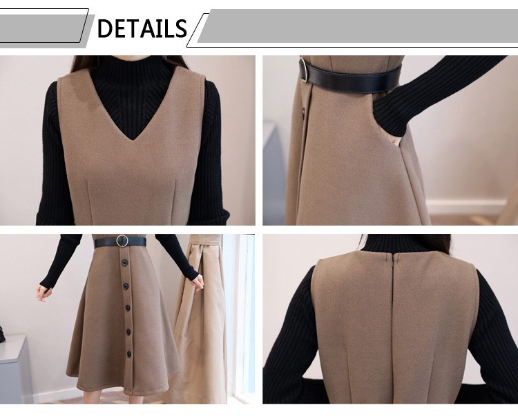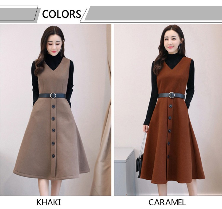 2点セット 長袖トップス Vネックワンピース Aラインスカート 長袖セーター 秋冬 着痩せ 膝丈 ロング 厚手 お洒落 通勤ウェア マキシ丈カラー:カーキ キャラメルサイズ:M/L/XL/XXL/XXXL素材:ポリエステル