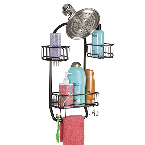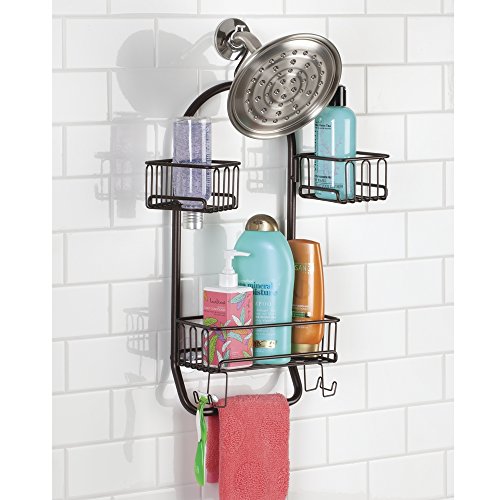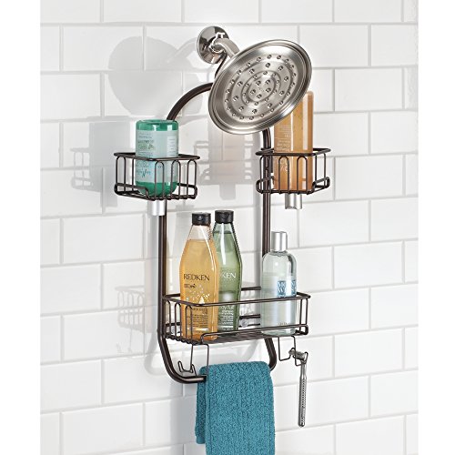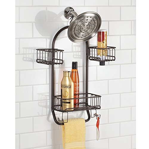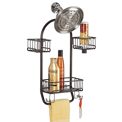 mDesign Bathroom Shower Caddy for Tall Shampoo, Conditioner, Soap Bottles - Bronze