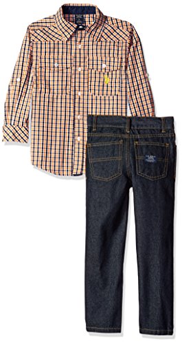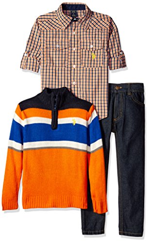 U.S. Polo Assn. Little Boys' Sport Shirt, 1/4 Zip Chest Striped Sweater and Denim Jean, Multi Plaid, 5