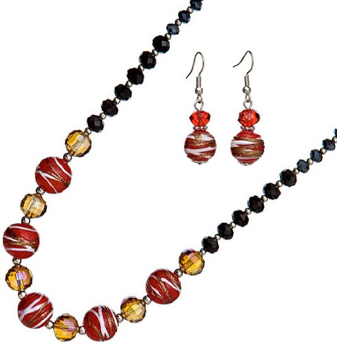 From the alternating green and smoked hues to the varied sizes of the adornments, this necklace and earring set draws you from the start. Fashioned with uniquely designed striped artisan beads, this duo brings art and jewelry together. Abstract enough to broaden the imagination, and conventional enough to be worn for any occasion. This would make an excellent addition for every collector of unique jewelry.Feature