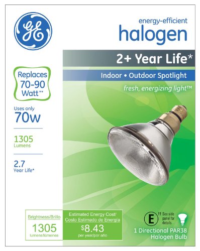 GE Lighting 68979 Energy-Efficient Halogen 70-watt 1305-Lumen PAR38 Spot Light Bulb with Medium Base, 1-Pack
