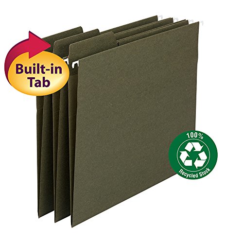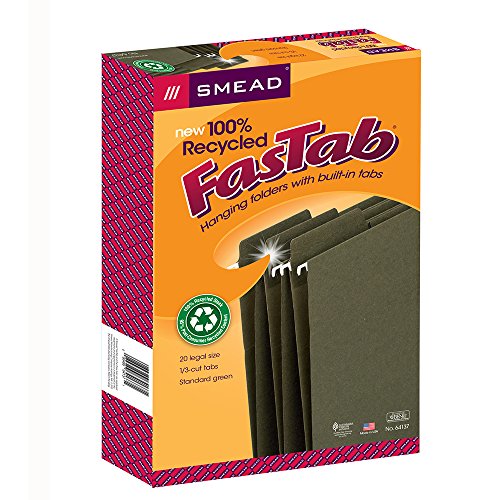 -. Title : Smead 100% Recycled FasTab Hanging File Folder, 1/3-Cut Built-In Tab, Legal Size, Moss, 20 per Box (64137)