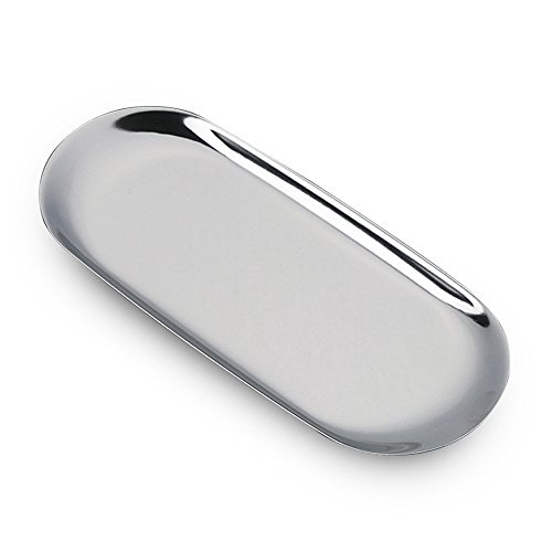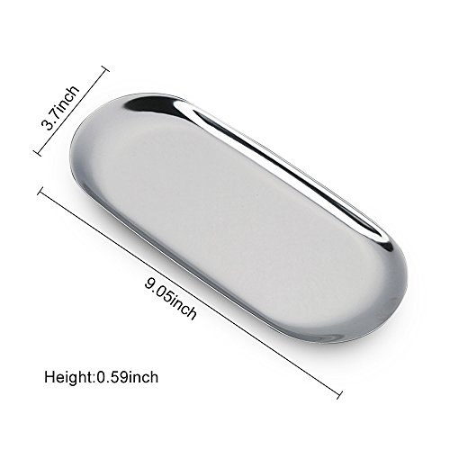 Stainless Steel Cosmetic Jewelry Organizer Trays, Kisstaker Oval Muti-Functionary Storage Trays for Wax Tray Towel Tray Dish Plate Fruit Plate with 9 x 3.7 x 0.6 Inch (Silver)