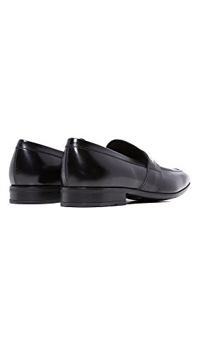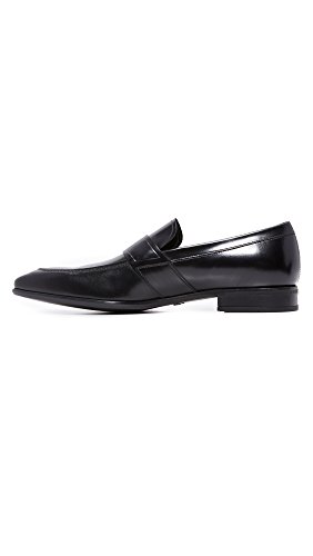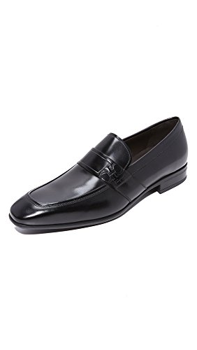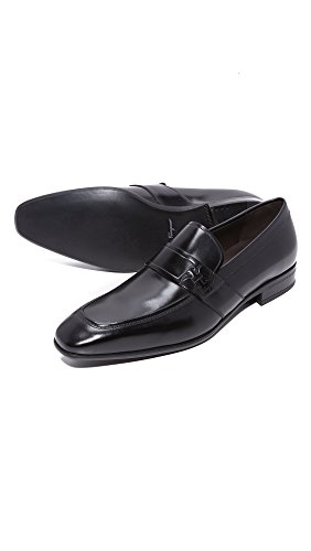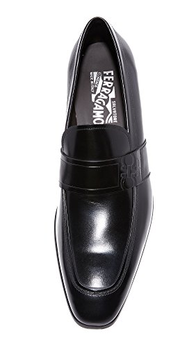 Product DescriptionClean Salvatore Ferragamo loafers with a tapered, apron-toe design and an embossed logo strap over the vamp. Stacked heel and rubber sole. Full leather sock liner.0