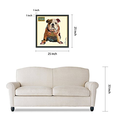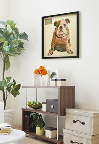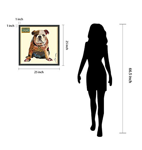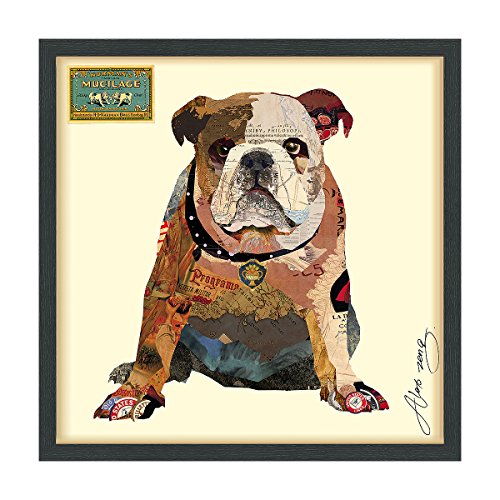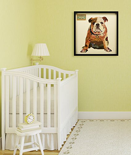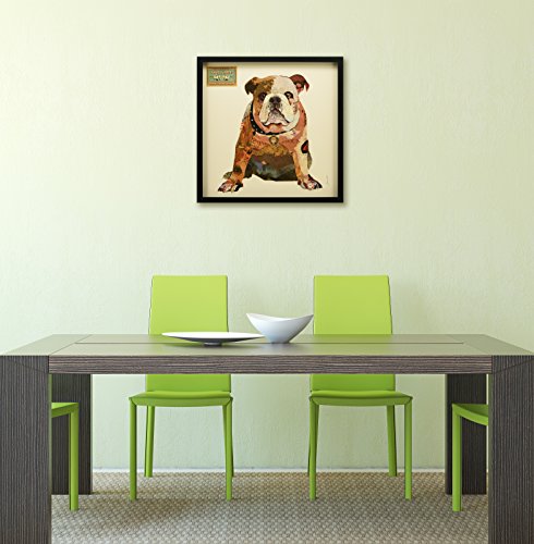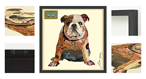 The iconic English Bulldog has a reputation for toughness and steadfastness. This may be true, but they are also one the most lovable and personable dogs on Earth. Alex Zeng brings out the incredible personality of these dogs in this charming artwork. This dog is sitting on his haunches staring at you, perhaps wanting you to bring him home. The more you look at him, the less you are able to resist. Framed in a black wood veneer, this piece will go well in any dog lover’s collection.Feature