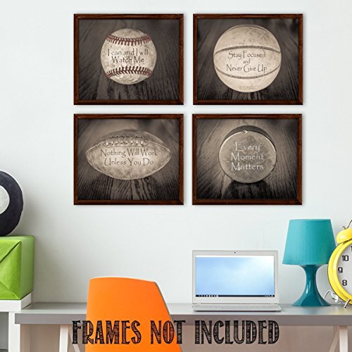 Bring a little whimsy to your household. These four prints show vintage sports photography overlayed with motivational quotes. The original photo artwork has been reinterpreted by award winning artist Norm Lanier.