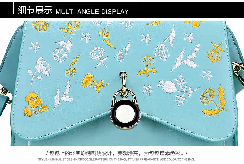 Style: Messenger Bag Backpack way: Messenger shoulder portable Texture: PU Material Technology: Embossing Carry parts Type: The soft Closed way: zipper Hasp internal structure: zipper pocket cell phone pocket document bag bag type: dig bag Popular elements: Embroidery Pattern: Plant flowers Whether the sandwich: None Whether folding: No Condition: New Applicable scene: Leisure Style: Small fresh Shape: square cross-section Strap style: single root Lining Material: Polyester