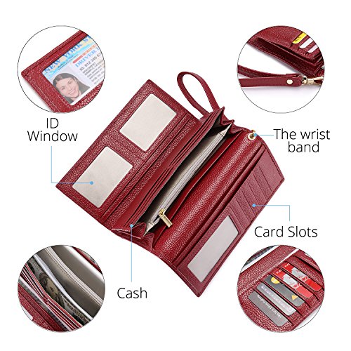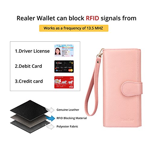 (Realer)/Accessories/Wallets, Money Key Organizers/DIRECT FROM USA/Wallets for Women Rfid Blocking Genuine Leather Long Ladies Wallet Purse with Wristlet Strap Bifold
