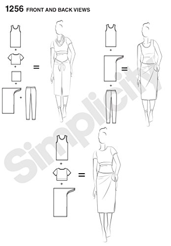 Simplicity Multitaskers Beginner Pattern 1256 Misses Easy Knit Leggings, Tank-top, Crop Tee, Sarong, Size 4-26