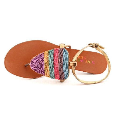 - Title : Nine West Women's Wonderous1 Thong Sandals in Purm/Bronze Size 10