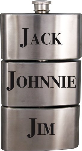 Studio : Island Dogs (Home Decor) Publisher : Island Dogs (Home Decor) Binding : Misc. Product Description Why bring one type of beverage with you, when you can bring three. The three wise men flask lets you take jack, johnnie, and jim, or any of your other favorites in your back pocket. Share with your friends, or keep them all to yourself. 0