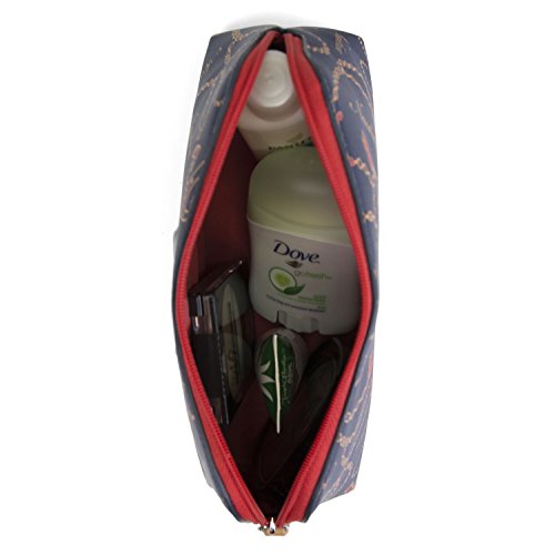 WOMENS COSMETIC BAG – A functional cute beauty case measuring: 5 x 3 x 8.5” that has 1 large zippered pocket plus a BONUS TSA approved reusable plastic bottle that will protect and store your personal items