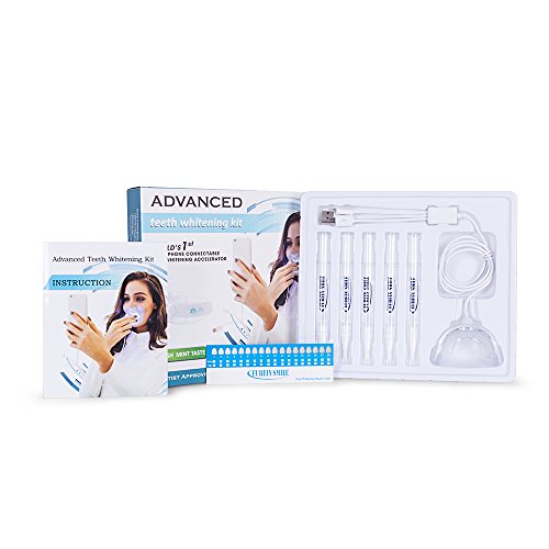 Advanced Teeth Whitening Home Kit with 5x Whitening Gel Brush Pen+ 16 LED Whitening Accelerator+Shade Guide +Instruction Sheet