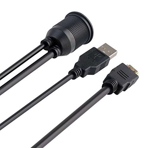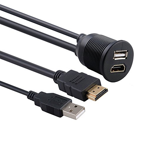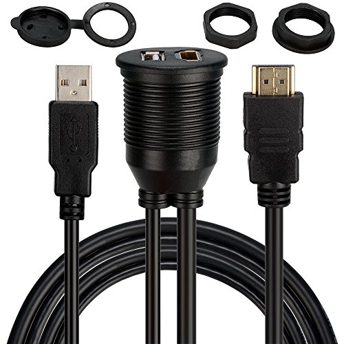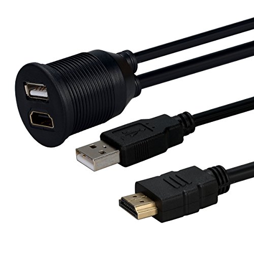 BATIGE USB & HDMI to HDMI + USB AUX Extension Dash Panel Waterproof Car Flush Mount Cable For Car Boat and Motorcycle - 3ft