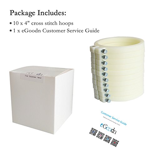 ★ Package Includes: 10 pcs x 4 inch embroidery hoop, 1 x eGoodn Customer Service Guide. *** Please only purchase from eGoodn. We do not guarantee the quality and customer service if your buy from the other sellers