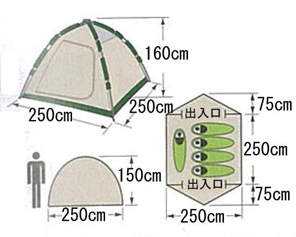 | 通気性を高め開放感を得られるメッシュをインナーテント天井に装備。フルフライ仕様のドームテントです。紫外線95%カット!UV-PROTECTIONコーティング生地を使用しています。 |