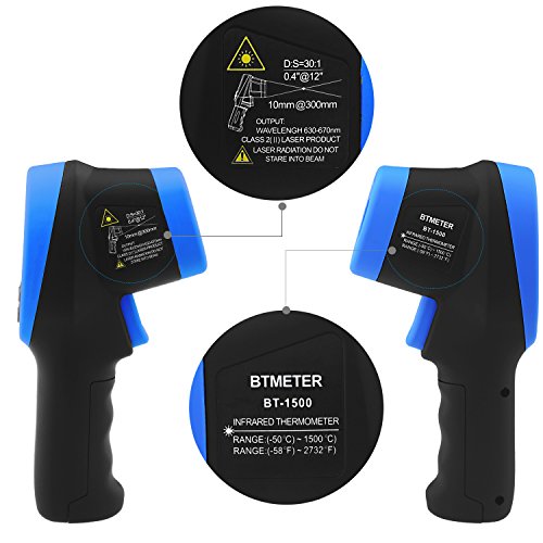BT-1500 Non-Contact Digital Double Laser Pointers and Flashlight FDA IR Infrared Thermometer Temperature Gun 30:1 Distance Spot Ratio for Electric Automotive Industrial -58℉ - 2732℉ (-50℃ to 1500℃)