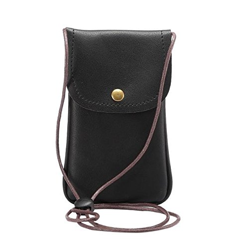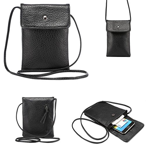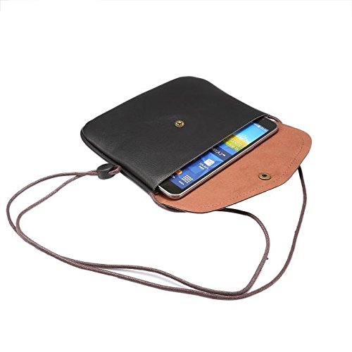WaitingU Universal Large Crossbody Cell Phone Bag PU Leather Carrying Case Credit Card Holder Adjustable Shoulder Pouch Bag for iPhone 6/6S Plus Samsung Galaxy Note Series Phones Under 6.4'' -Black
