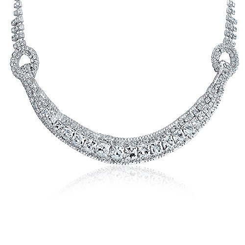 Nothing says glamour quite like a crystal necklace around your neck. This sparkly Art Deco style crystal necklace is silver plated for a timeless design. Crystals bring a huge dose of shine to any outfit and would certainly be a winning addition to your bridal jewelry look. Elegance never goes out of style and neither will this crystal necklace.