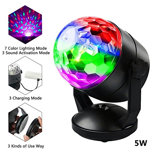 Zeben Activated Party Lights Strobe Lamp 7 Modes Color Disco Ball Light Battery Powered/USB Plug in LED DJ Lights RBG Disco Ball Light for Bar Club Party DJ Karaoke Car Wedding Show