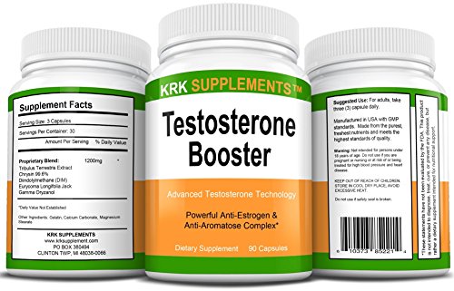 -. Title : 2 Bottles Testosterone Booster Anti-Estrogen & Anti-Aromatase Complex Tribulus Terrestris Extract Chrysin Diindolylmethane DIM Eurycoma Longifolia Jack Gamma Oryzanol 180 Total Capsules KRK Supplements