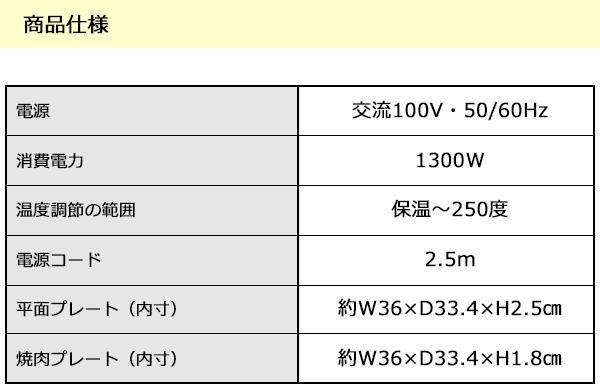 | セット内容 | ふた、本体、平面プレート、焼き肉プレート、電源コード、取扱説明書兼保証書(保証期間:1年間)※取扱説明書に「お料理ノート」ページあり |