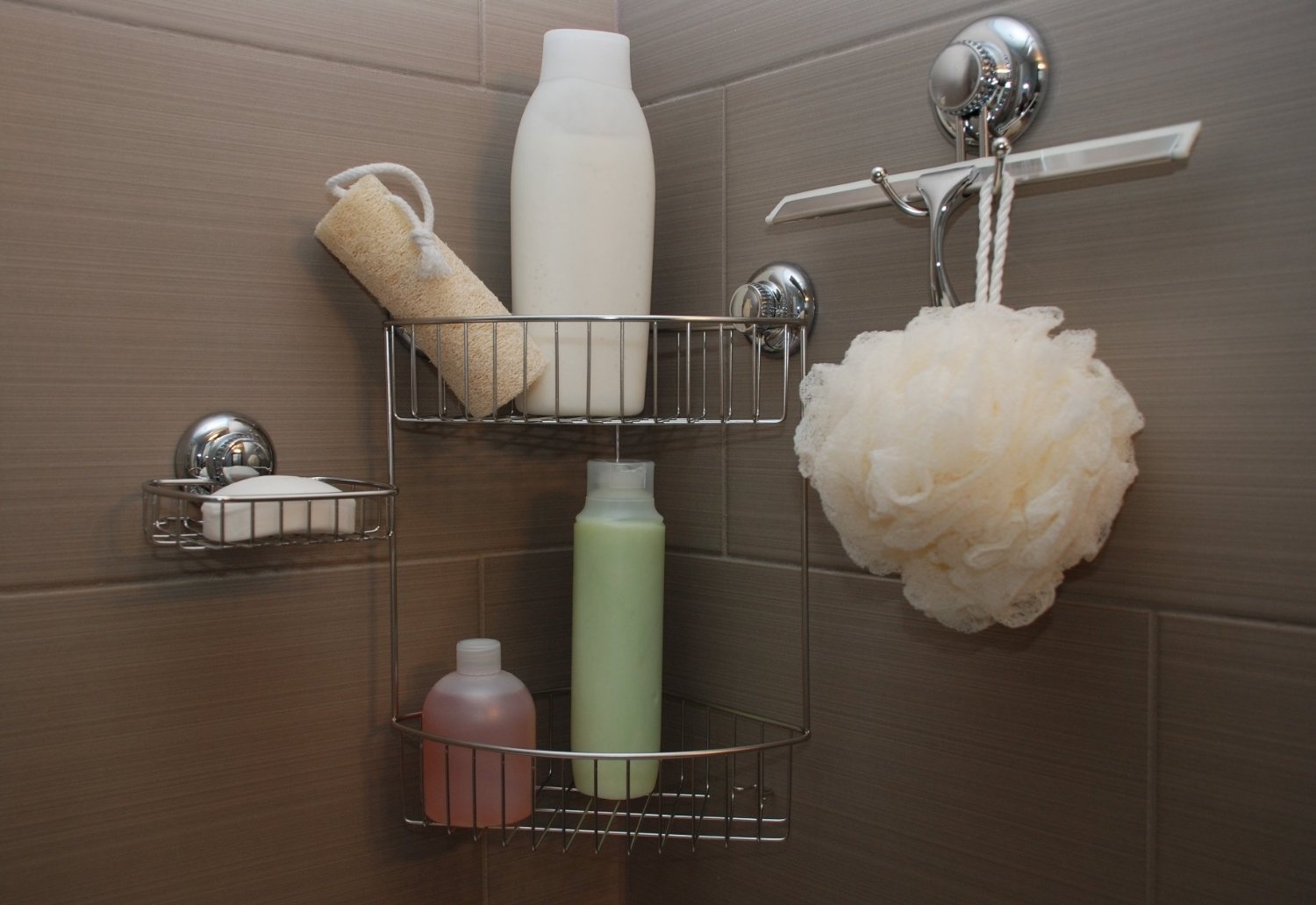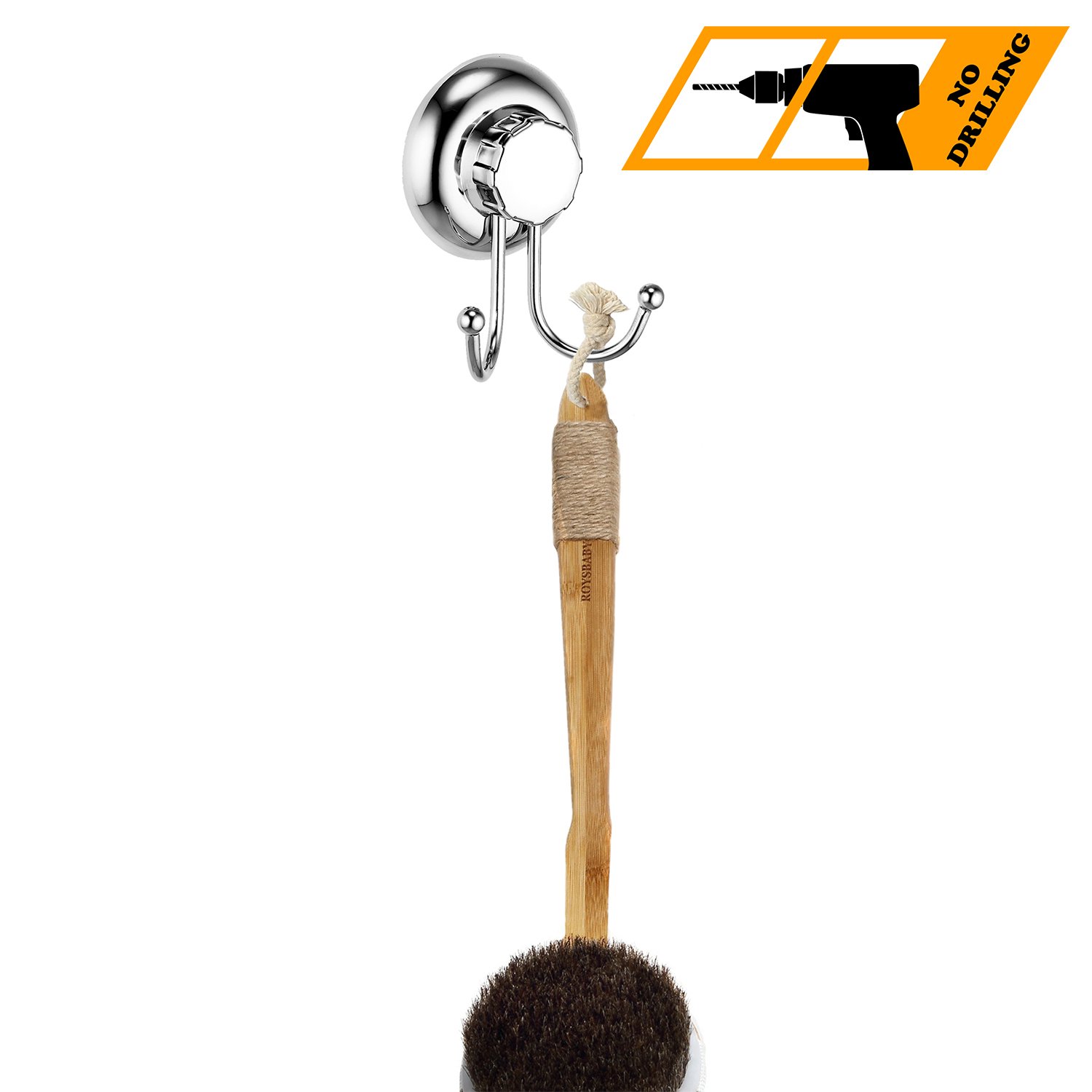 Simple design double hook is perfect for storing body brush in bathroom.