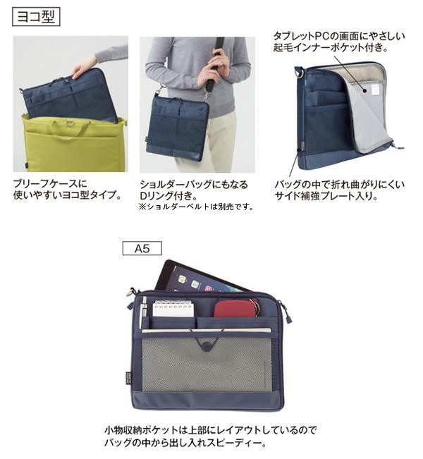 | タブレットPCに優しい起毛生地ポケットが付いた薄型バッグインバッグです。 |