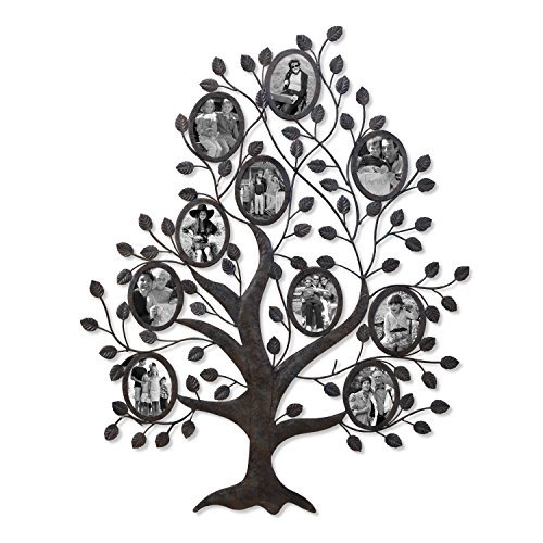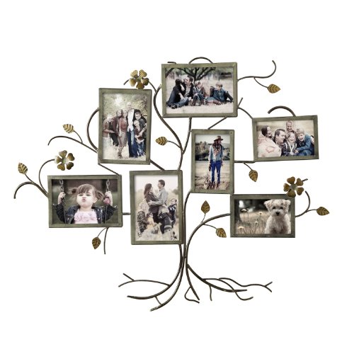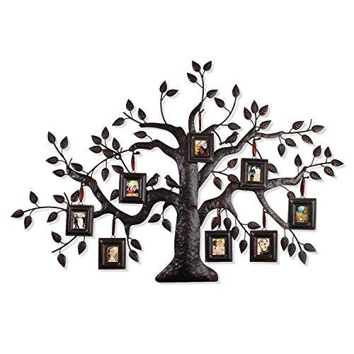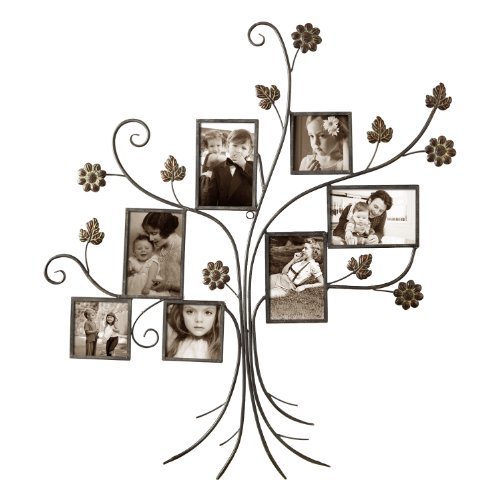 This beautiful and unique iron tree is a wonderful addition to your hallway, living room or kitchen decor. Abstract flowers and leaves twine behind seven bronze-colored picture frames of various sizes, creating an eye-catching and whimsical collage that is sure to win you many compliments. This special piece makes a perfect anniversary or wedding gift, as well.Feature