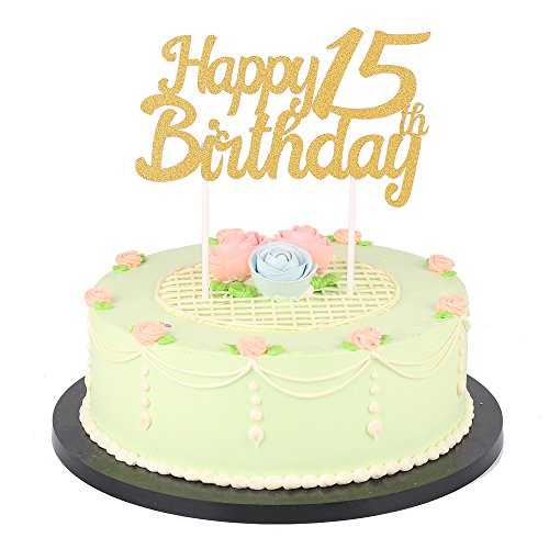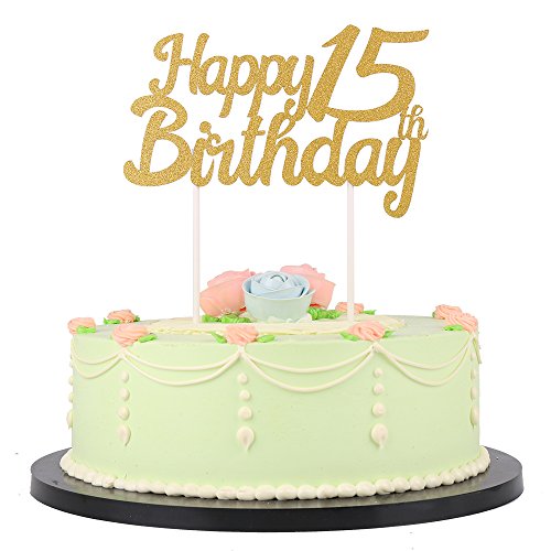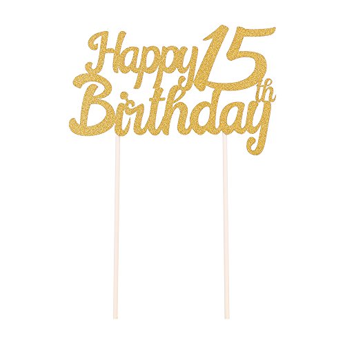 LXZS-BH Gold Glitter Happy Birthday Cake Topper,Party Cake Decoration Supplies (15th)