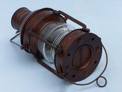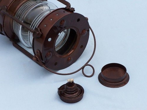 Hampton Nautical Antique Copper Anchor Oil Lantern, 12", Copper