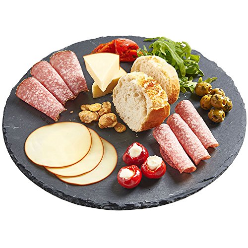 - Feature : Perfect as a cheese board or to display tapas, canapes, cakes, desserts, nibbles, dips & more! / Round design with 360° revolving base / Made from 100% natural black slate / Dimensions: 11.8" diameter, 0.2" thickness / Free 2 year extended warranty