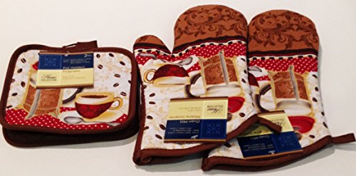 Home Collection Brown "Coffee" 2 Oven Mitts; 2 Pot Holders