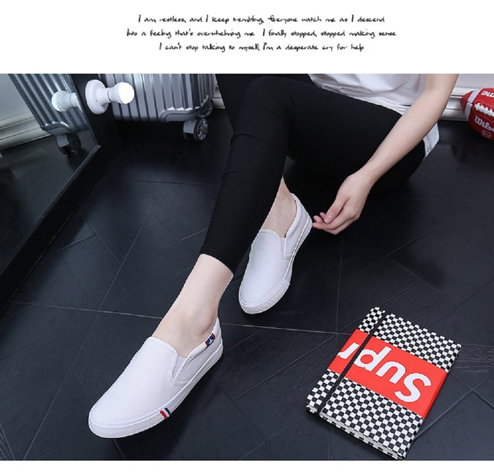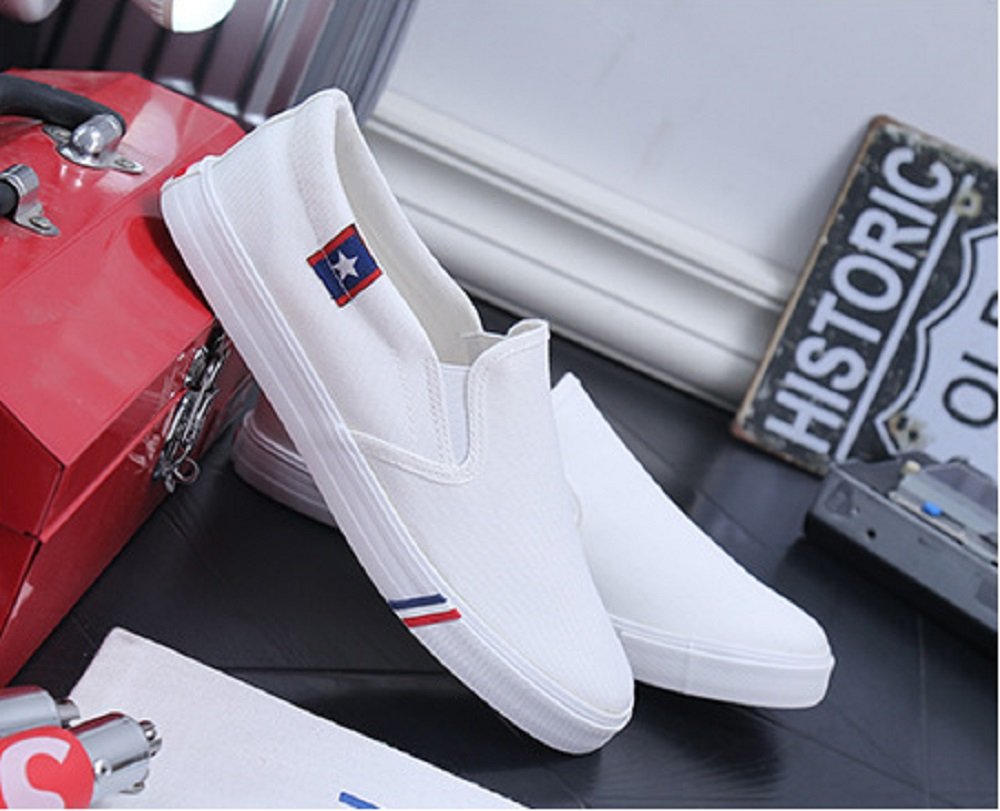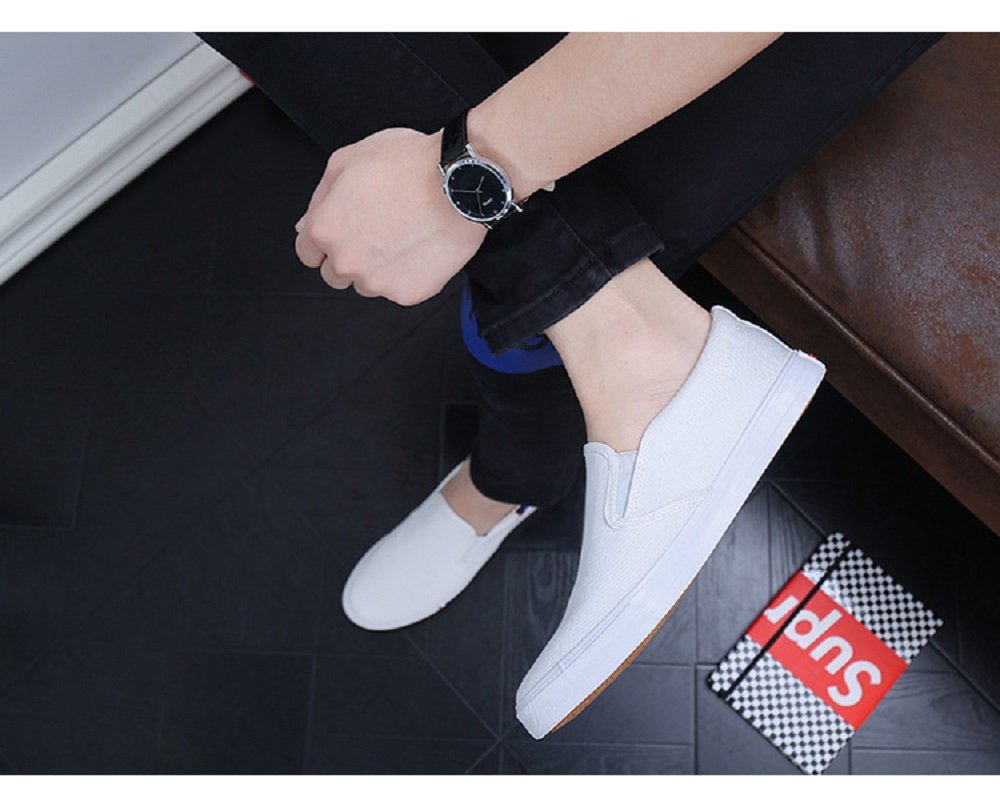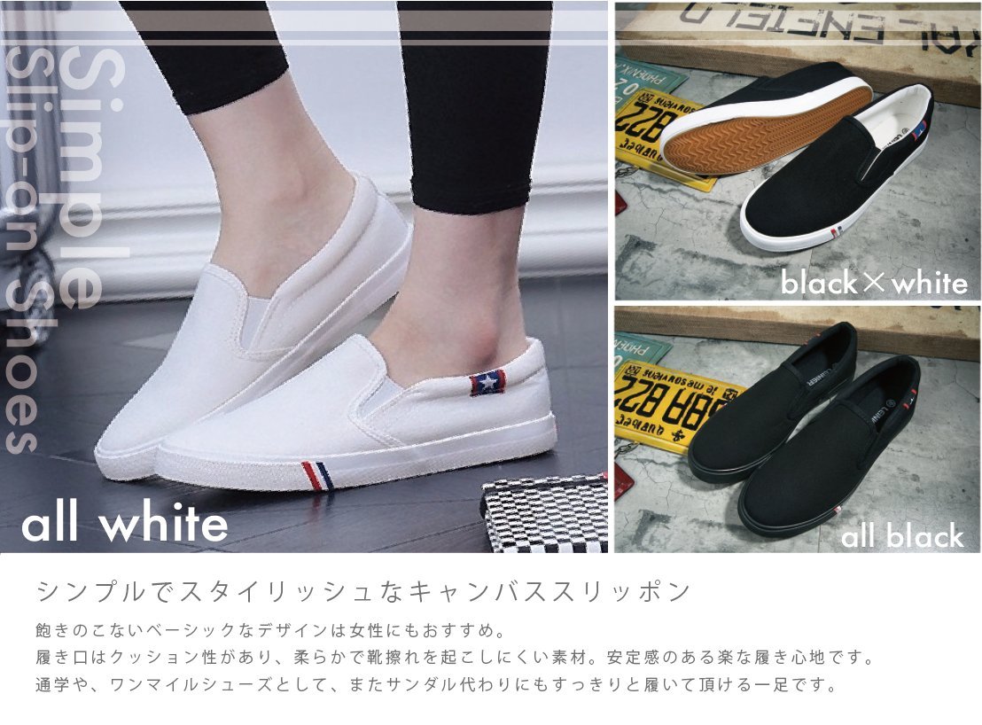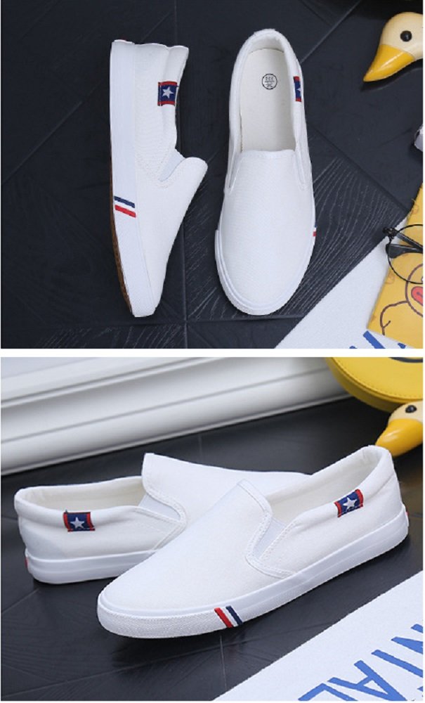 (Caenalie) Kaenarie Men's Women's slippon deck shoes black white canvas casual sneakers men and women