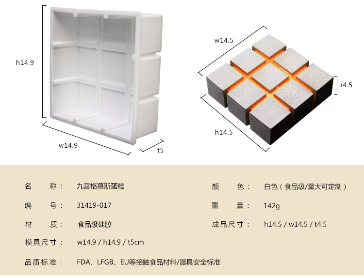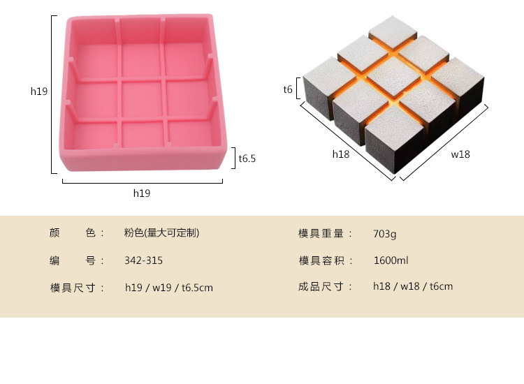 食品级九宫格慕斯蛋糕硅胶模具