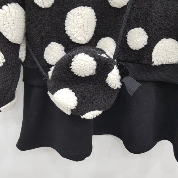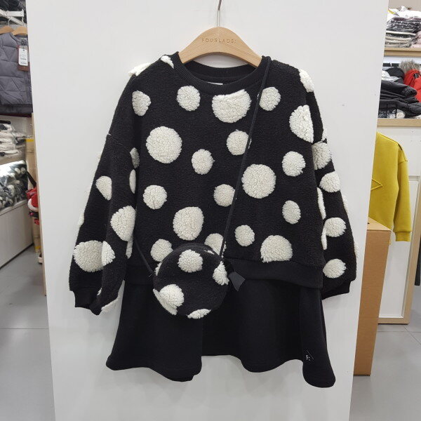 몽글몽글한 뽀글이 털 소재와 안감이도톰하며 기모가 아주 빵빵하게 들어간스판 소재의 원피스입니다여기에 보너스 크로스백이 더해져 귀여움을강조했고 블랙컬러는 도트 자가드가돋보이는 심플한듯 유니크한 멋이 있도록두칼라로 구성해보았어요