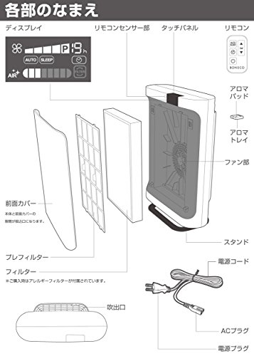 부속품:프리 필터,알레르기 필터(A501)고, 전원 코드,리모콘,아로마 패드(아로마 트레이에 수납)고, 취급 설명서(보증서 포함한다)
