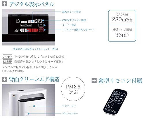 보네코 BONECO 【PM2.5대응】 공기 청정기(하이 엔드 모델) 「약20다다미 대응」 리모콘 부착 P500