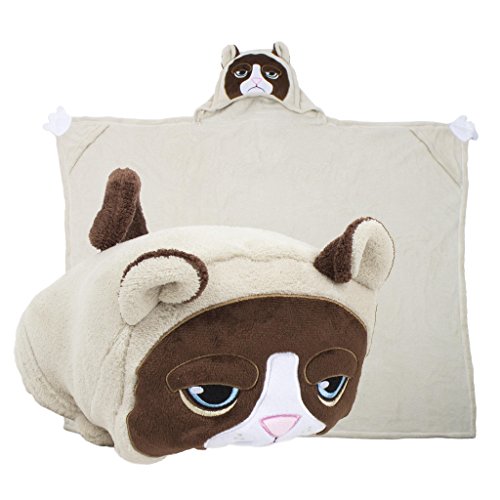 Comfy Critters Stuffed Animal Blanket – Grumpy Cat – Kids huggable pillow and blanket perfect for pretend play, travel, nap time.