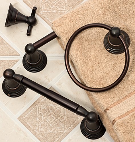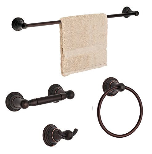 Dynasty Hardware 2200-ORB-4PC Muirfield Series Bathroom Hardware Set, Oil Rubbed Bronze, 4-Piece Set, With 24" Towel Bar
